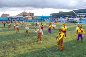 Asimismo, al medio día se desarrolló la gran presentación de Danzas en el Estadio Polideportivo Municipal de Azángaro, con un colorido despliegue artístico de danzas por los conjuntos folclóricos.