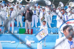 Durante la ceremonia se destacó la participación de 23 conjuntos folclóricos, quienes mostraron su saludo y adhesión a la festividad, reafirmando el aporte de los conjuntos culturales al fortalecimiento de la identidad azangarina.